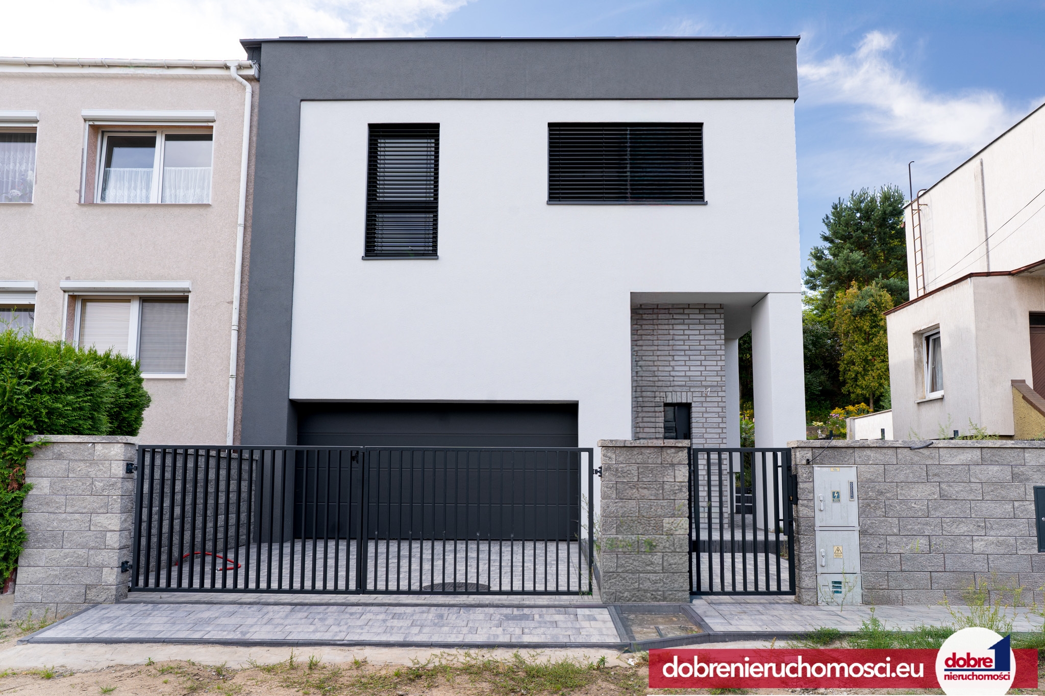 - ogrodzenie, kostka brukowa, nowoczesna elewacja
