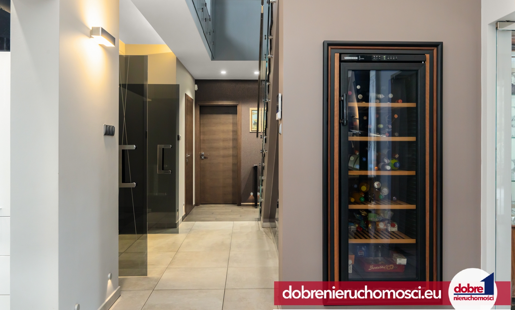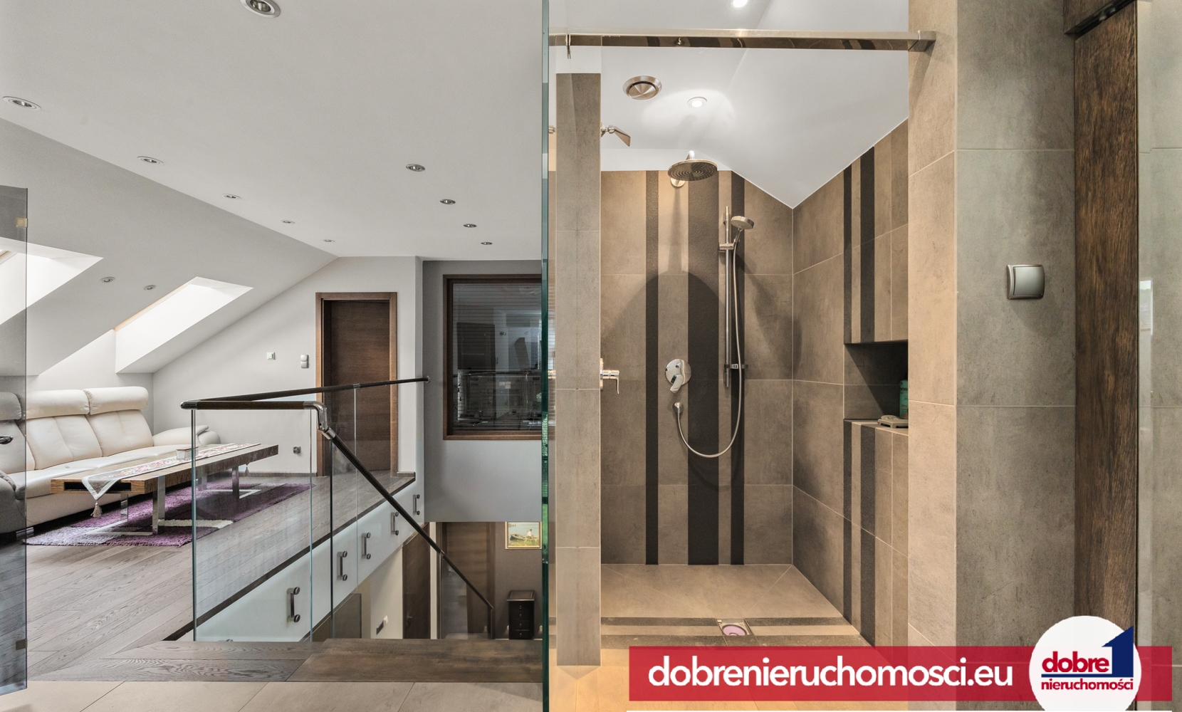 - pięknie wykonane schody ze szklaną balustradą