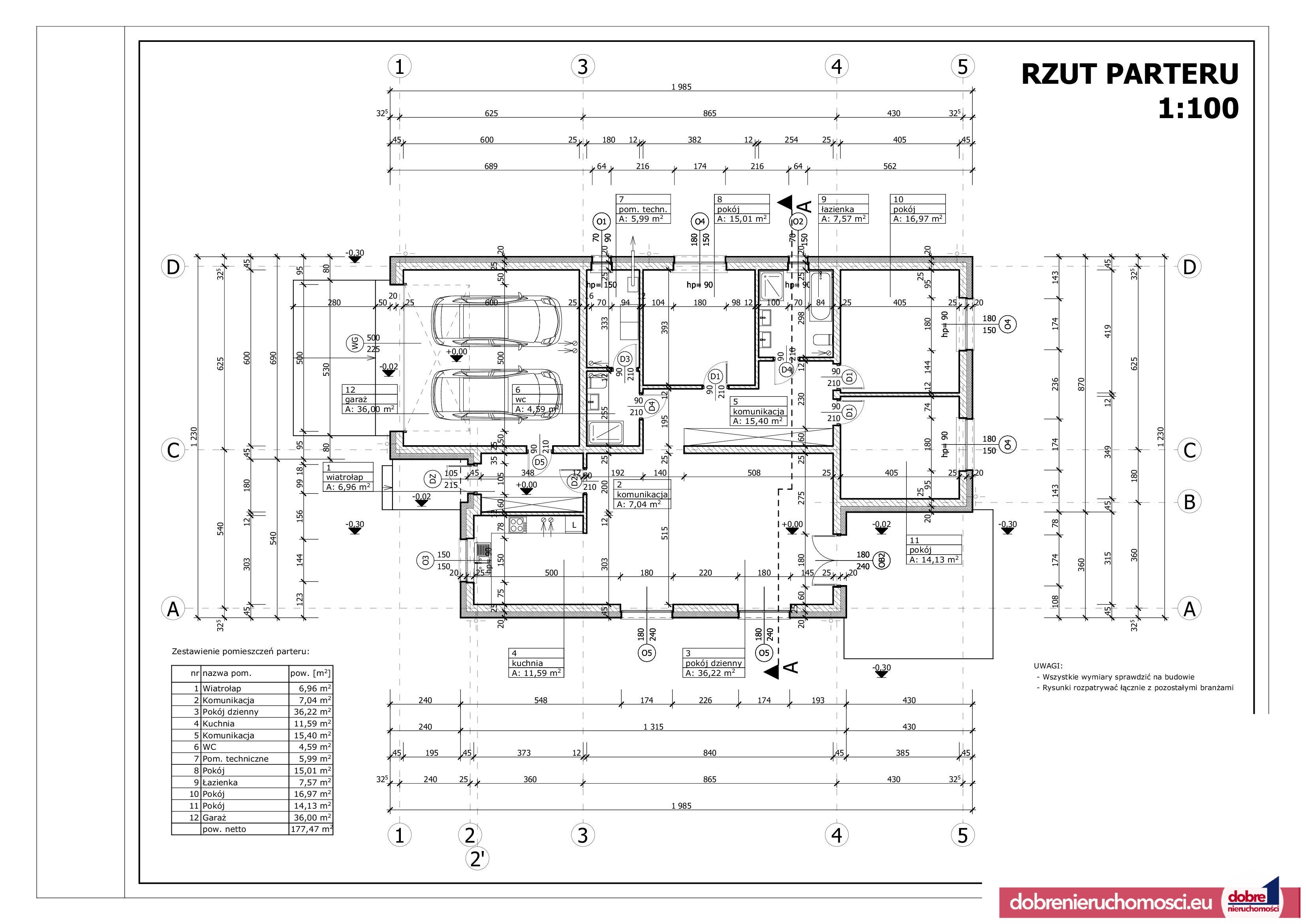 - garaż dwustanowiskowy o powierzchni 36m2,