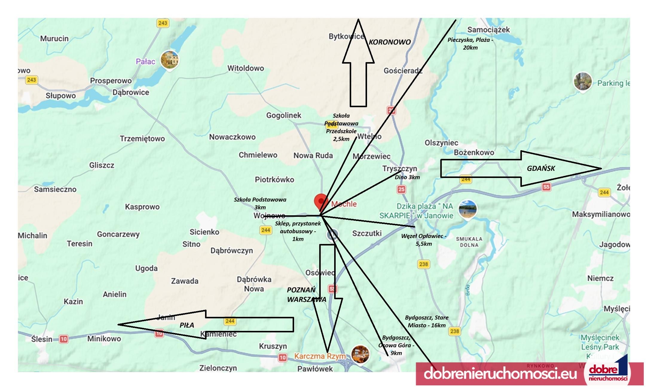 Mochle to miejscowość ceniona za spokój i jednocześnie doskonałą dostępność do infrastruktury: