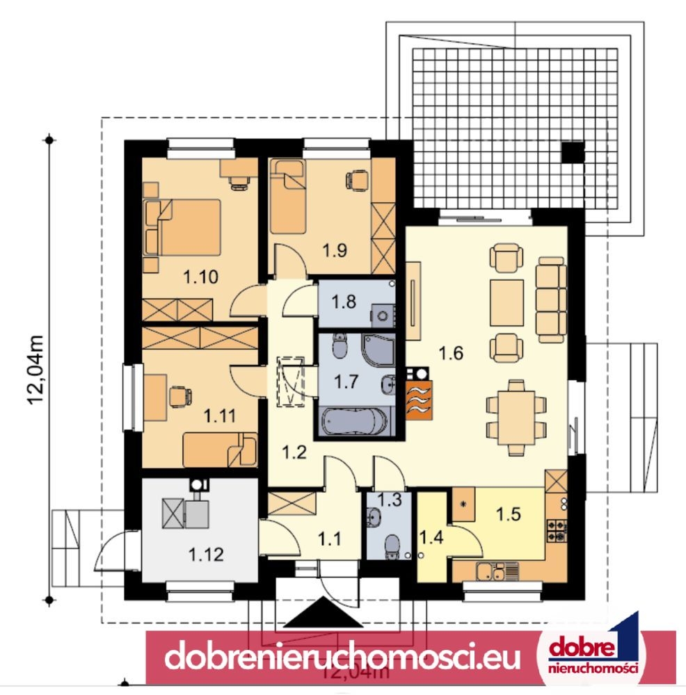 Nieruchomość o powierzchni użytkowej 106,09 m² została zaprojektowana z myślą o komforcie codziennego życia – funkcjonalny układ pomieszczeń w całości na parterze sprawia, że dom idealnie sprawdzi się zarówno dla rodzin z dziećmi, jak i osób ceniących wygodę.