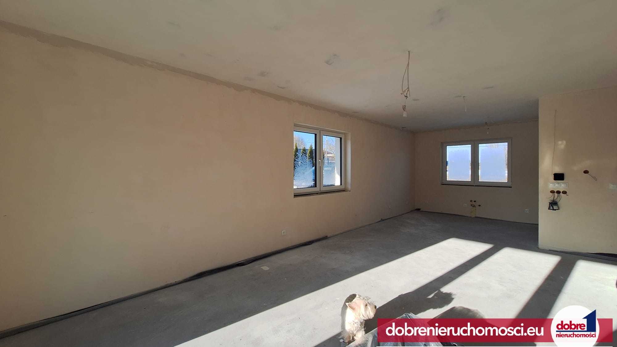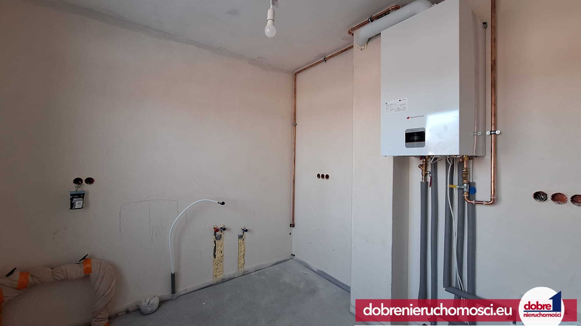 Budynek jest nowy, wykończony w stanie deweloperskim, wyposażony we wszystkie niezbędne przyłącza: prąd, wodę, kanalizację oraz gaz. Dodatkowym atutem są elektryczne rolety zewnętrzne, zwiększające komfort i bezpieczeństwo.