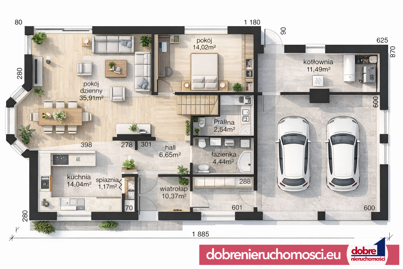 - kotłownia – 11,49 m²