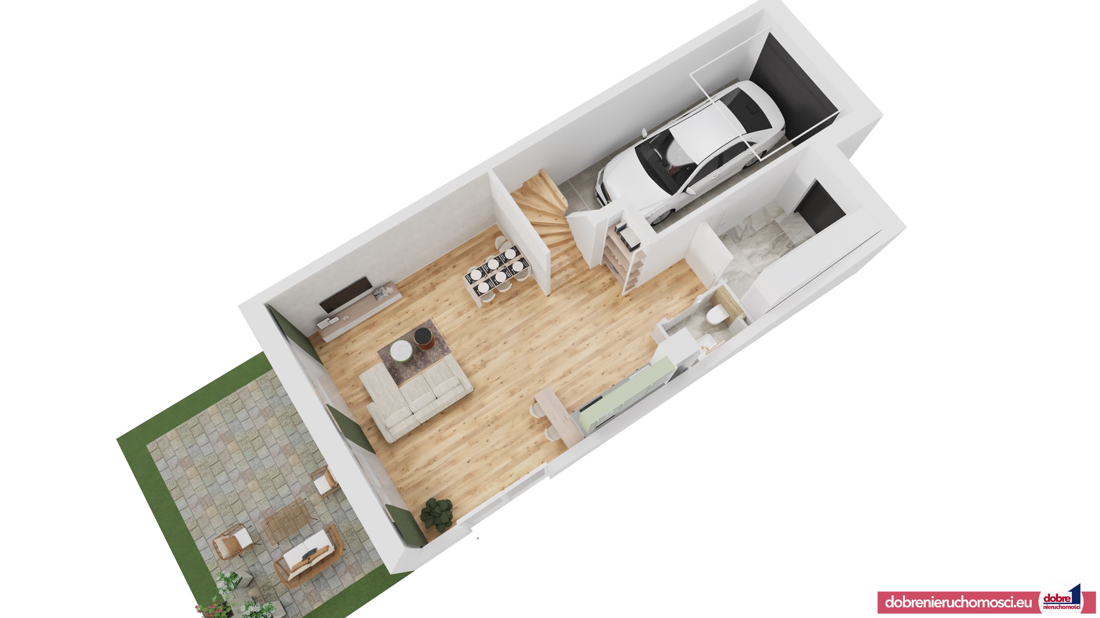 Nowy dom w zabudowie szeregowej o powierzchni 126,10 m², z garażem w bryle budynku, położony w otoczeniu lasu i terenów spacerowych. Idealne miejsce dla rodziny, która ceni ciszę, przestrzeń i nowoczesne rozwiązania.